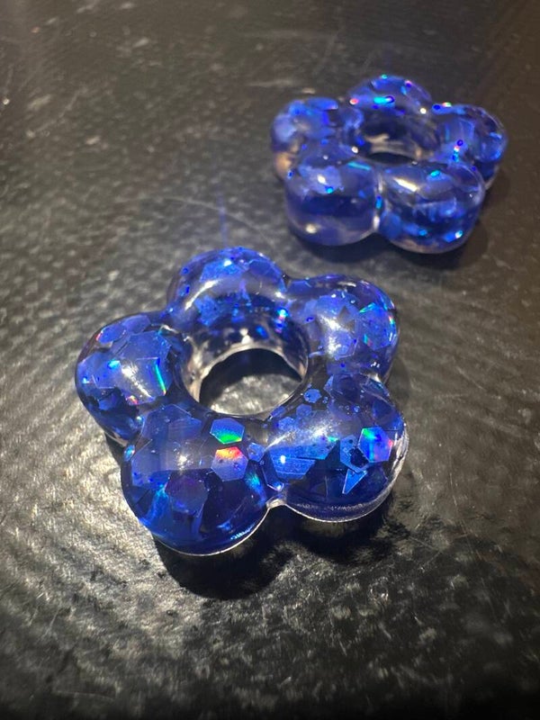 Pampilles fleur 5 pétales bleu paillettes résine