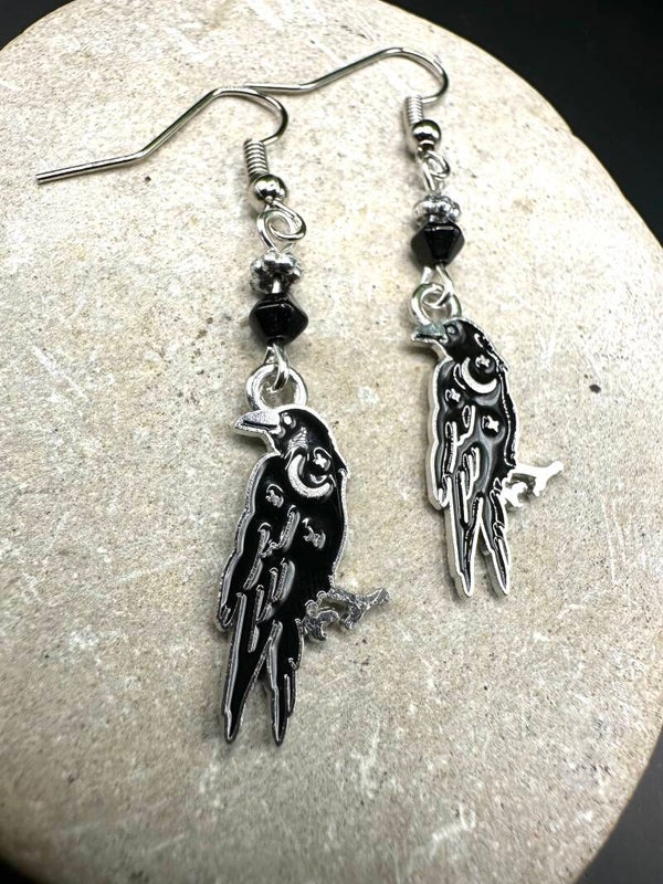 The CrowBreloque corbeau en métal Petites perles en plastique Crochets en acier inoxydableLongueur du pendant 3,5cm Livré avec stoppeur en silicone