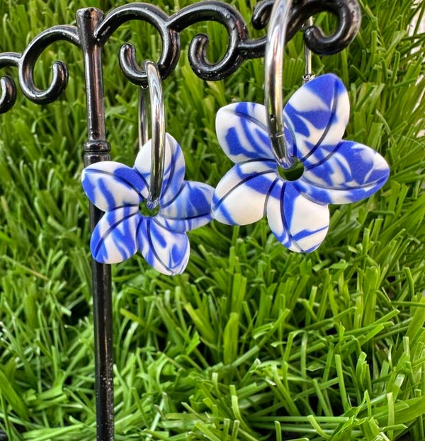 Boucles d’oreilles “Fleur de Porcelaine” – Bleu et blanc